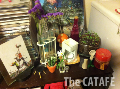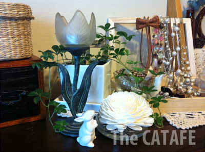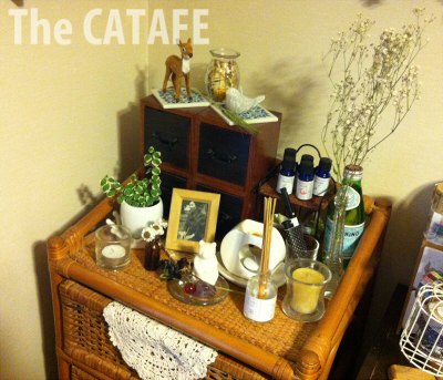 うさぎちゃんの横のは「ソラフラワー」って言うんでしたっけ?キャンドゥで買ったいい匂いのするお花です。ナチュキチとかでも売ってますよね。オイルをかければ香りが復活するので便利ですよー。今はバニラの香り放ってます。
