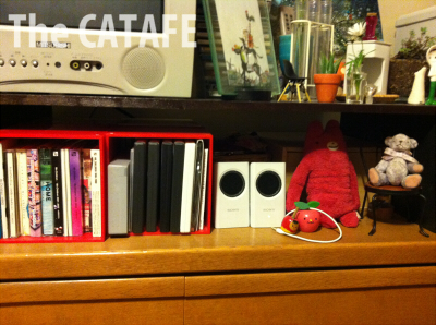 冷蔵庫&テレビと生活感が並ぶゾーンだったため、開き直ってCD・DVDとか、部屋にいるときにiPodをつないでるスピーカーとか電化製品関連をがっつり置いてました。
