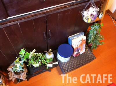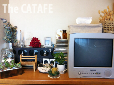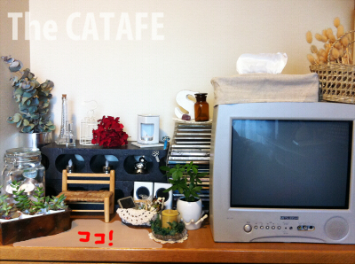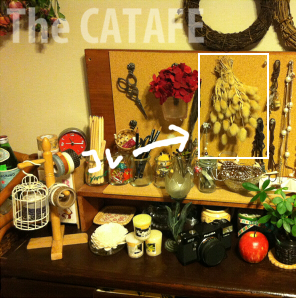 この猫じゃらし(なのかしらないけどwユザワヤで買ったもの)はリモコンをさりげなく隠してくれていい感じ。