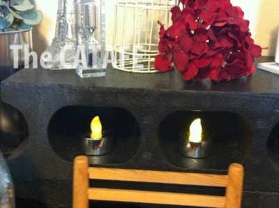 ブロックの穴には出来ごころでフェイクキャンドルを。ちろちろ光ると可愛いです。