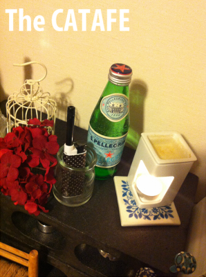 後ろにはライターとサンペレグリノの空き瓶入りの水を隠して置けて、キャンドルセットばっちりです。