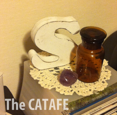 CDラックの上にはミカヅキモモコのアルファベットモチーフとniko and…でこの前買った薬瓶の小さい方、山梨に旅行に行ったときにお店のダンディなおじちゃんに乗せられて買ったアメジストを飾りました。