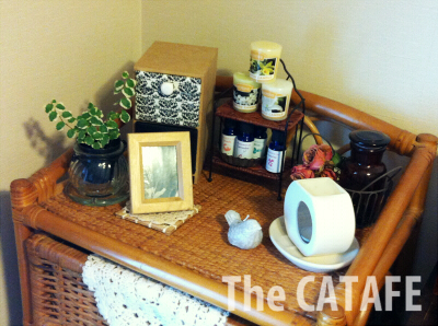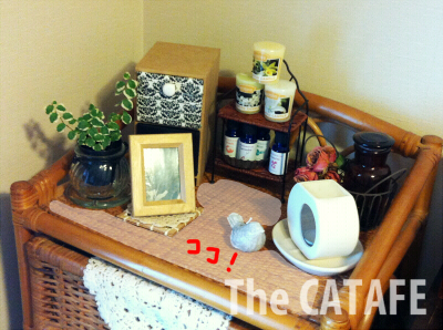 以前は籐チェストの前の床に置いてたんですけど、こっちの方が広々してていいですね。