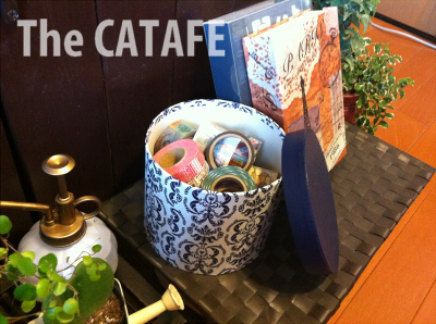 本棚の上でマスキングテープ入れになってたもの。ちなみにミスドの景品でバックスバニーの絵が描いてありましたw
