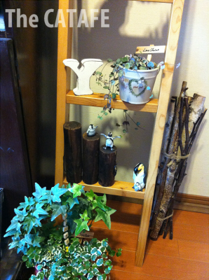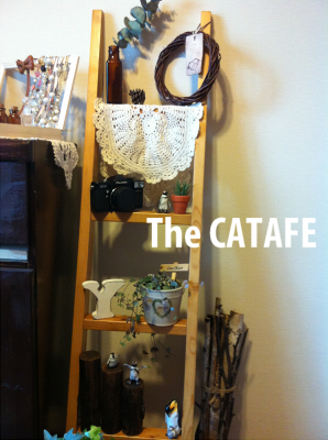 昨日一昨日と洋服ダンス、籐チェスト、本棚上のディスプレイを載せていましたが、さらに籐チェスト上の飾り棚&ラダ―もディスプレイを変更していました。
